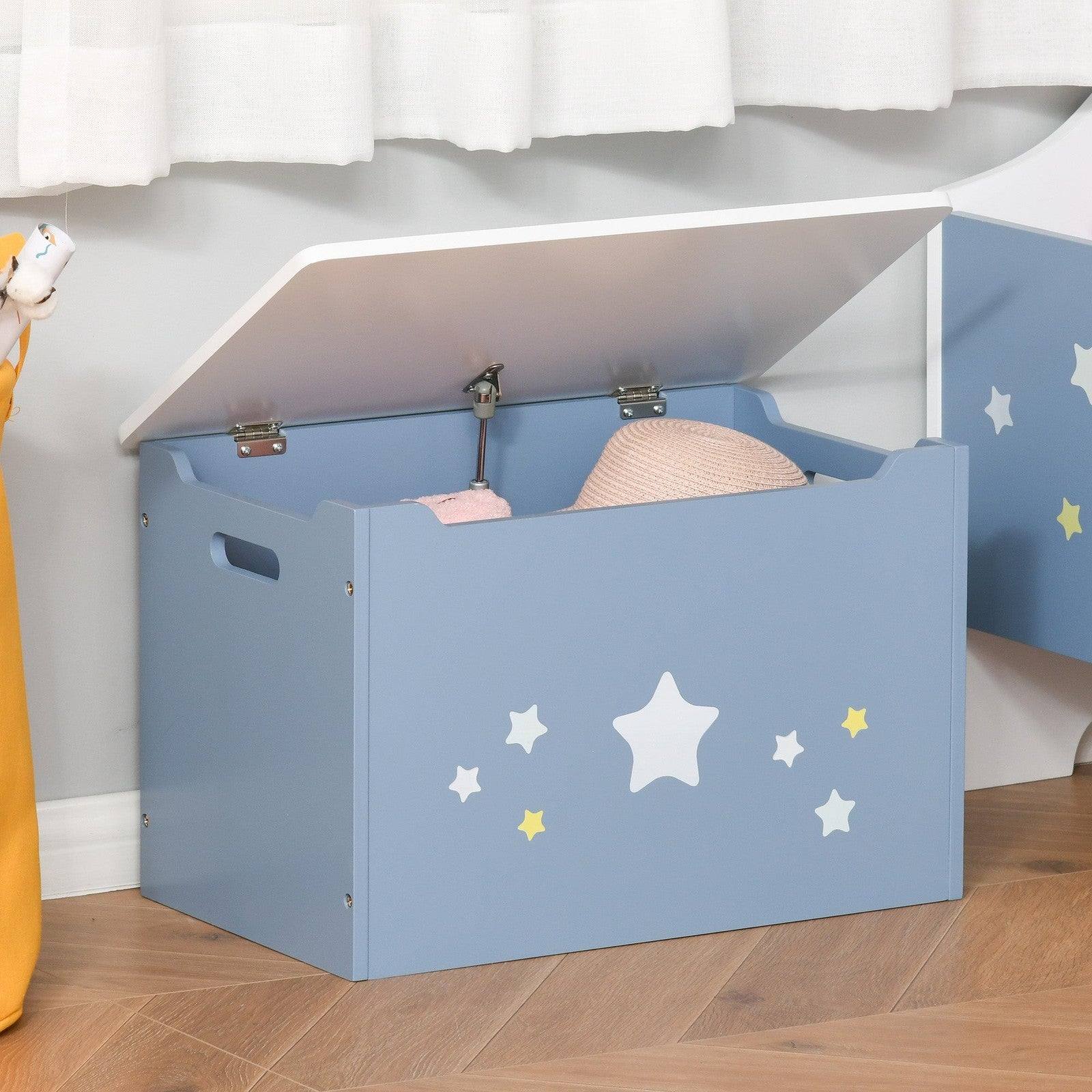 Kids Wooden Toy Box – Blue Storage Chest with Safety Lid & Handles